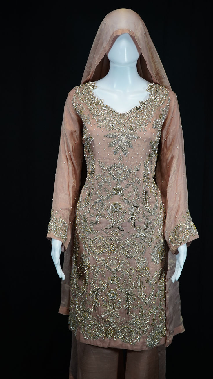 Named after the golden moon, Zarmina is elegance cast in light. With its rich tones, regal embroidery, and graceful silhouette, this piece is a tribute to timeless splendor. Every thread glows with quiet power — designed for the woman who walks like royalty and shines with inner gold.
