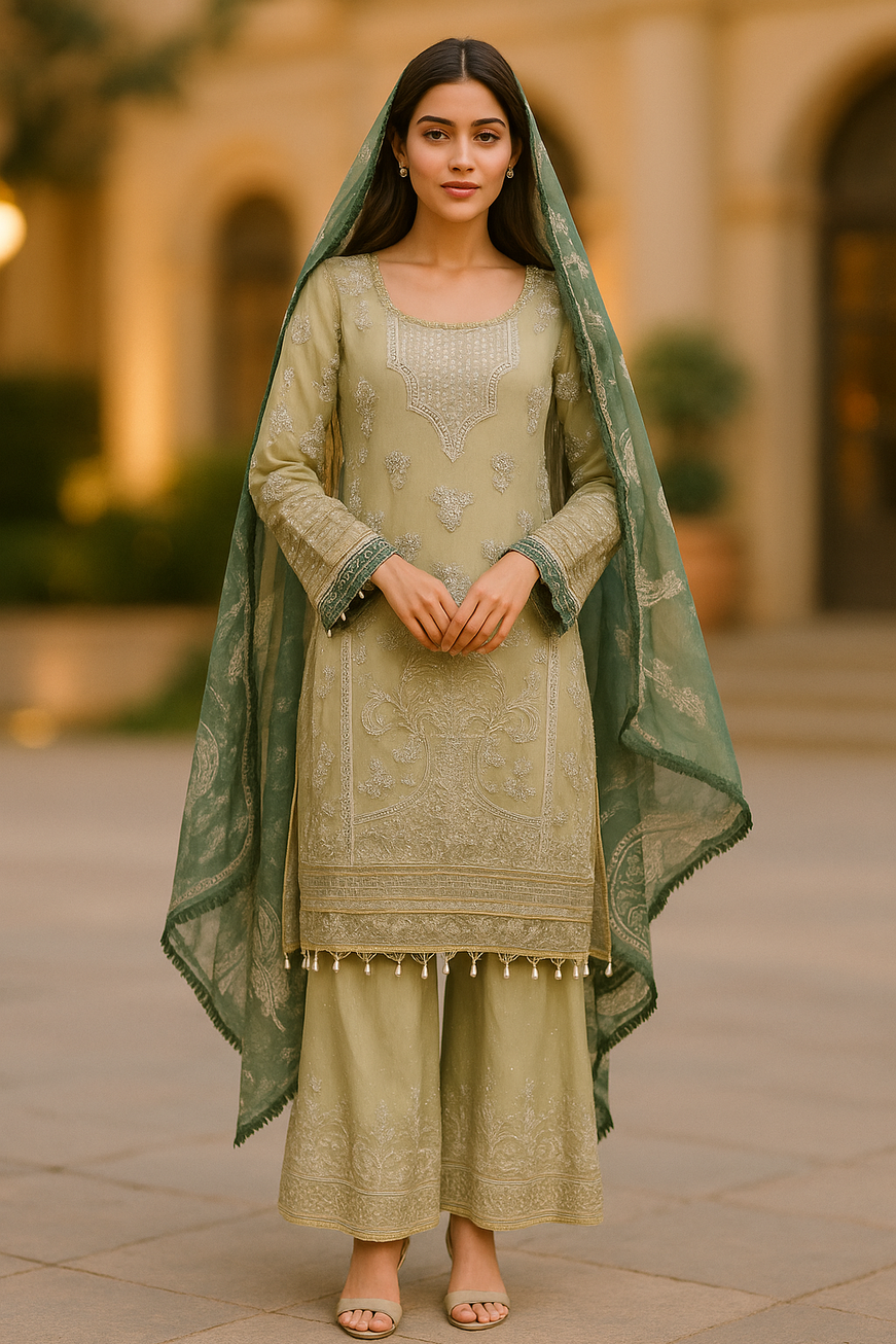 Inspired by the morning star, Zohra is a symbol of brilliance at first light — radiant, graceful, and full of promise. With celestial detailing and soft yet striking tones, this piece is made for the woman who stands out effortlessly. Whether at a gathering or a quiet moment of reflection, Zohra glows with elegance that feels both bold and serene.